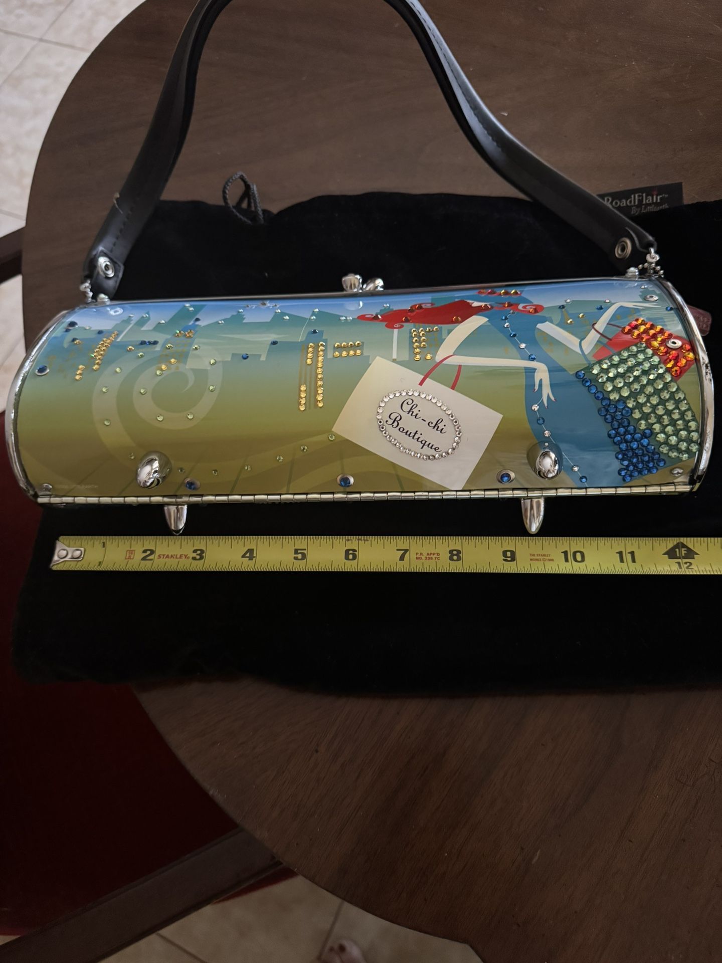 Unique collectible license plate purse. Hand embellished with Swarovski crystals. Certificate of authenticity. Small bad of replacement crystals. Includes velvet storage bag. New, never used. Non smoking home. Would make wonderful Christmas gift . No delivery, must pickup Cash only