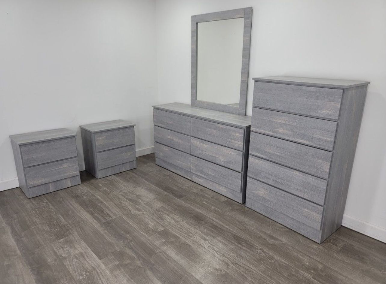 Dresser Whit Mirror, Chest And 2 Nightstands - Cómoda Con Espejo , Gavetero Y 2 Mesitas De Noche