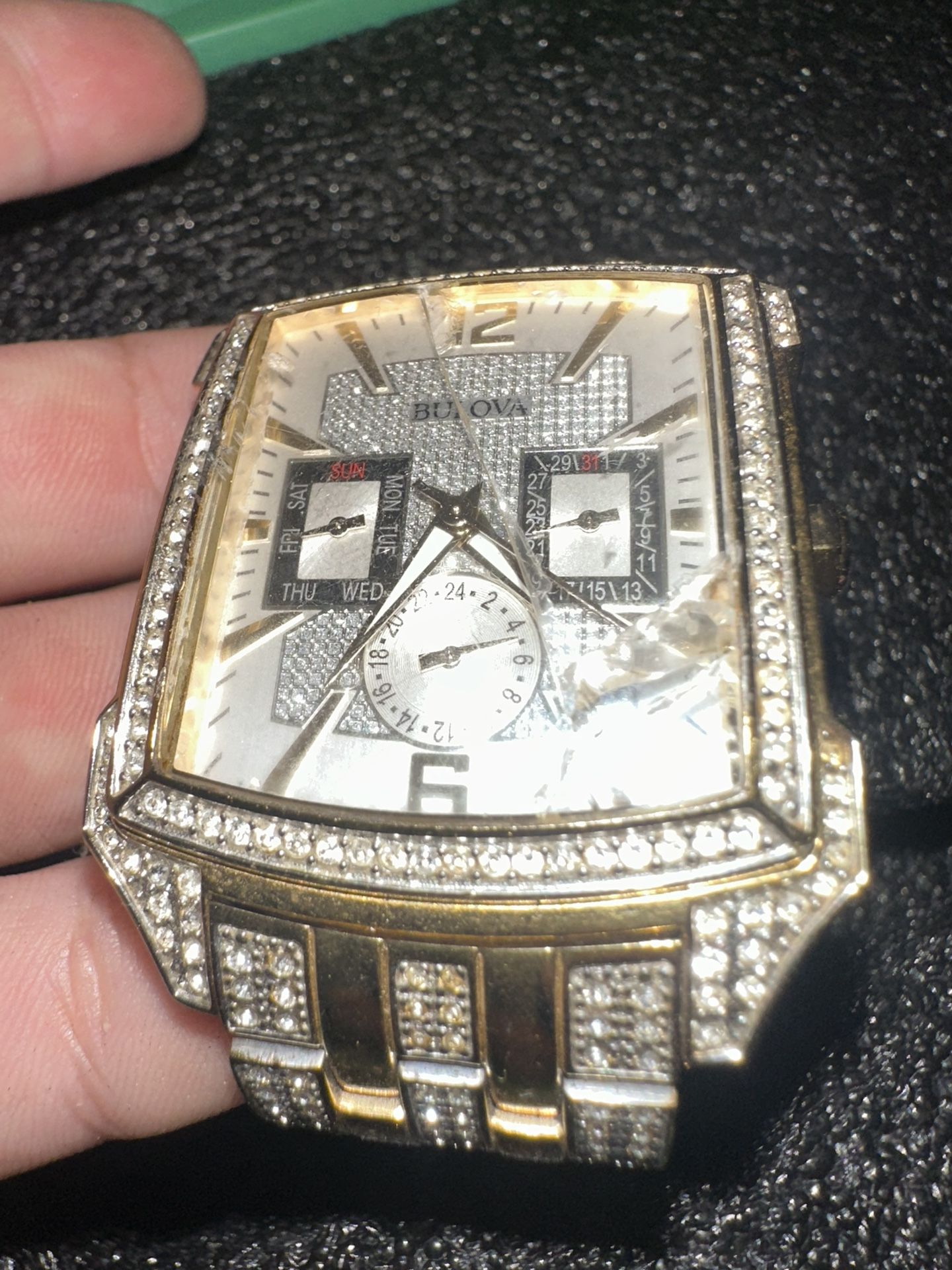 Was 450 now 200$ Bulova crystal watch broken glass still works just needs a new battery very high quality