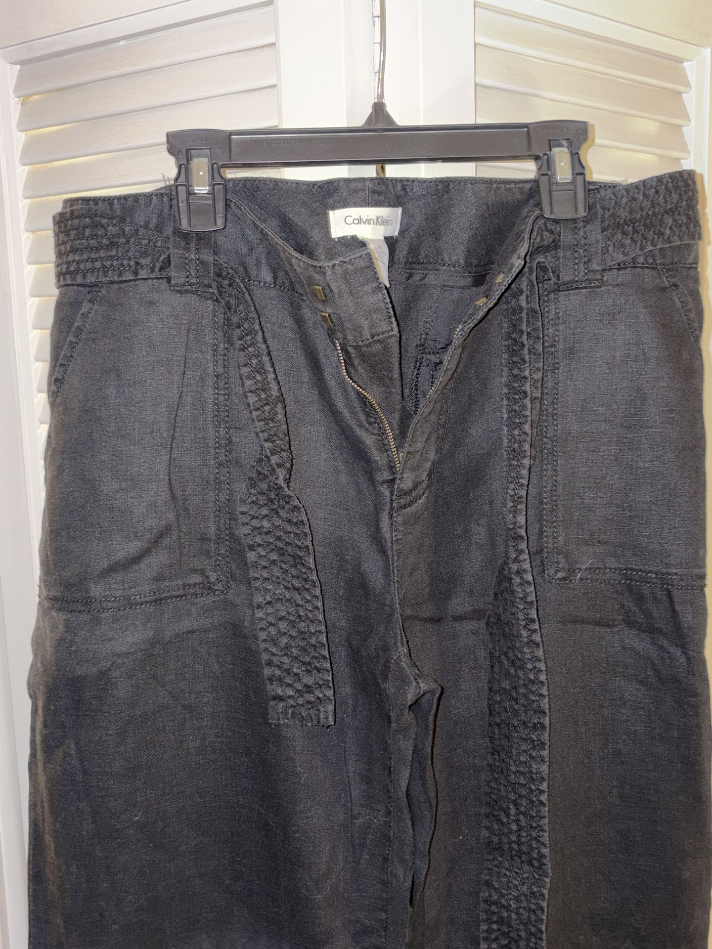 Calvin Klein Women’s Balck Linen Pants. Worn once. Includes fabric belt. Be sure to check our items often as we are always adding new items!