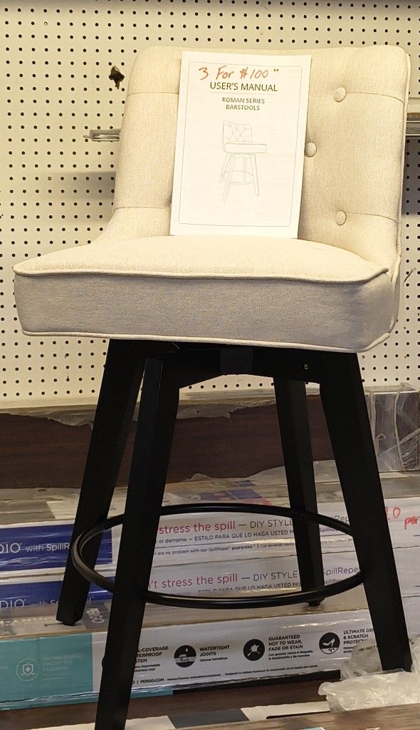 3 new swivel barstools 1 assembled 2 in box $100 for all 3