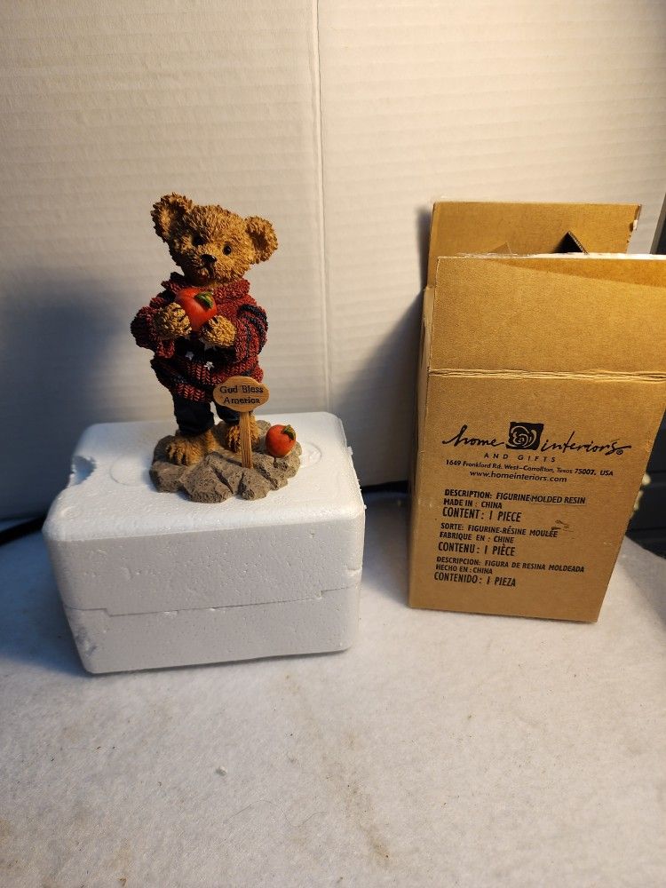 VINTAGE NEw Home Interiors God Bless America 2002 "Americana Bear" Figurine 4.5" Tall. I have other pieces from this collection listed. Only taken out of box for pictures. My aunt was a Home Interiors in home sales person. I have other Home Interiors items listed with more to come. I SHIP SAME BUSINESS DAY IF PURCHASED BEFORE 1030AM. NEXT BUSINESS DAY IF PURCHASED AFTER 1030AM.