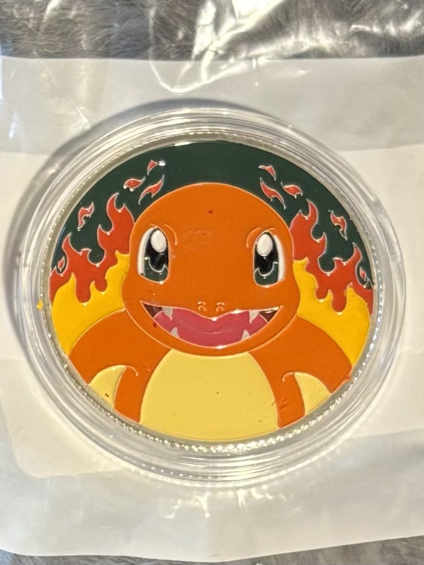 Rare 1oz .999 silver coin featuring POKEMON character Charmander. Great collector's item.