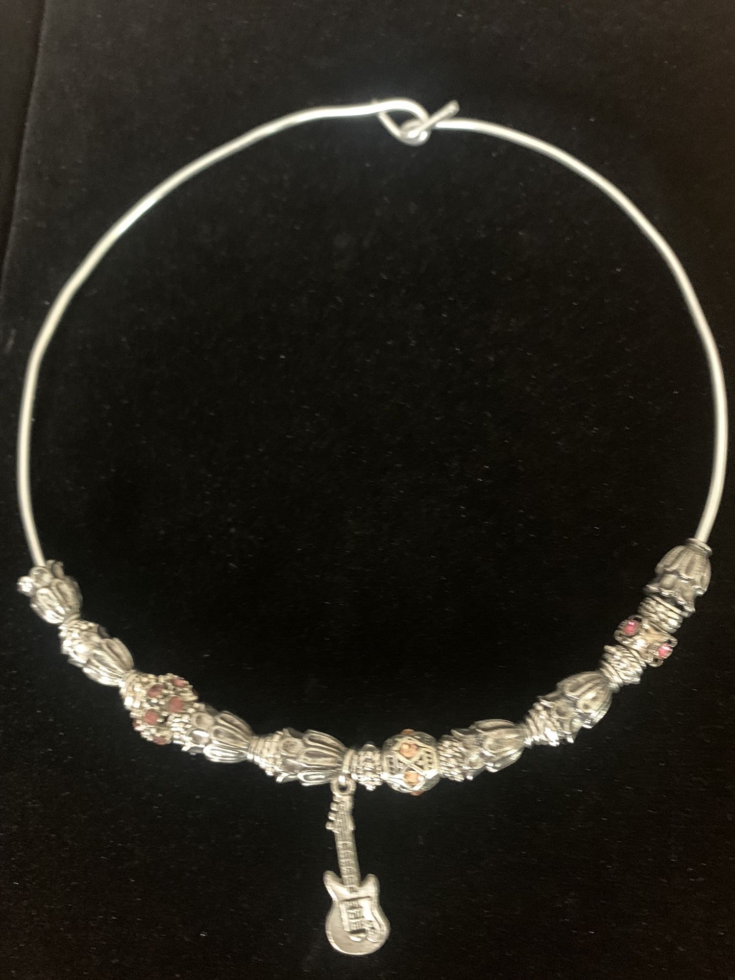 Stylish Silver Guitar Choker With Pink Sparkles - silver beads with pink sparkles and guitar pendant - can remove the pendant for u if u prefer without - make me N offer - rock and roll πΈ- be sure to check out my other items π