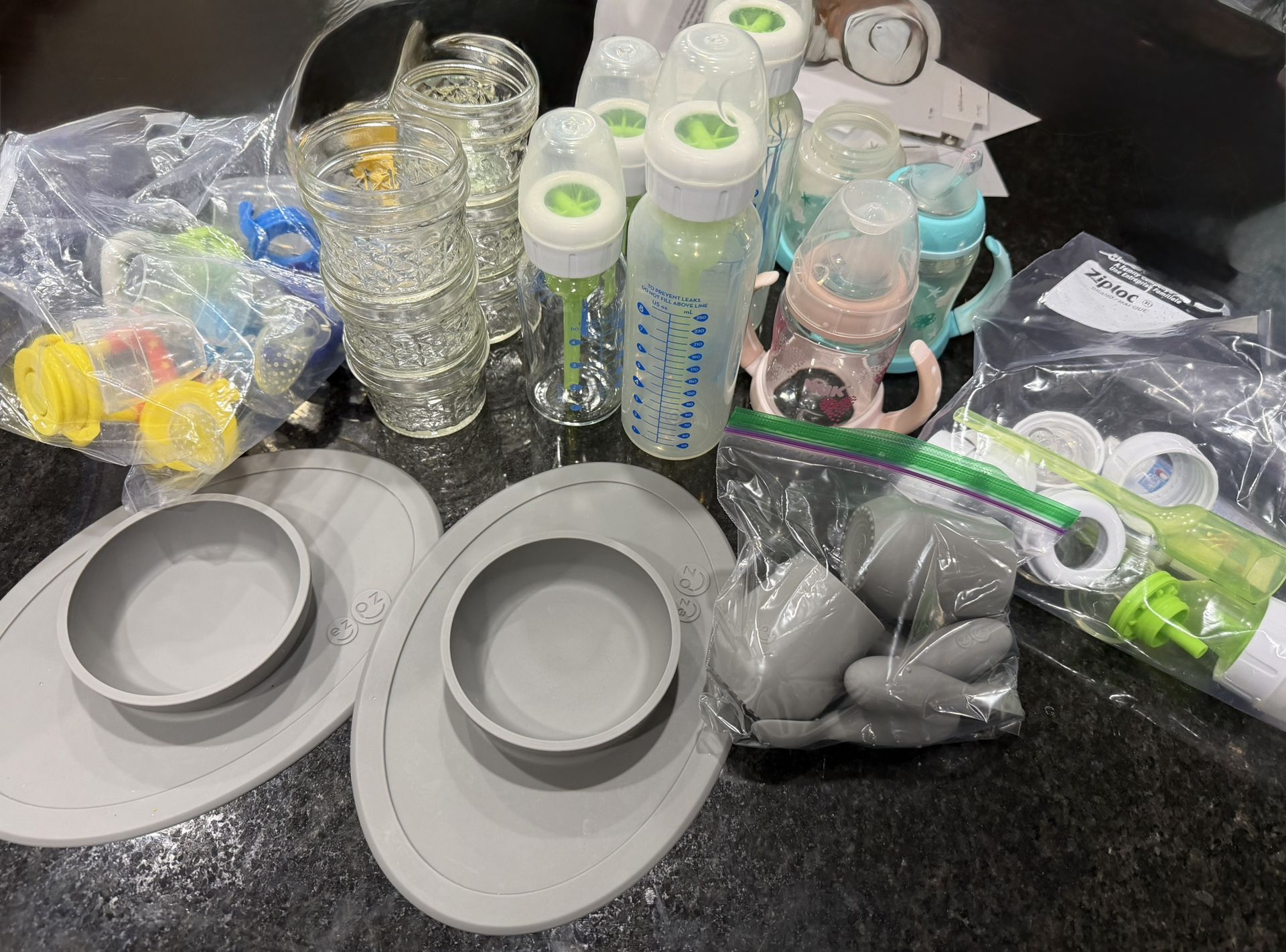 Baby feeding items. Thai will cover all feeding items you may need. :) (2) ezpz plates, 4 spoons, 2 cups 3 nuk cups 6 4oz for food storage 2 8oz Dr brown bottles 2 4oz glass bottles Baby mesh food feeders Extra bottle parts All in excellent condition. $30 for all items