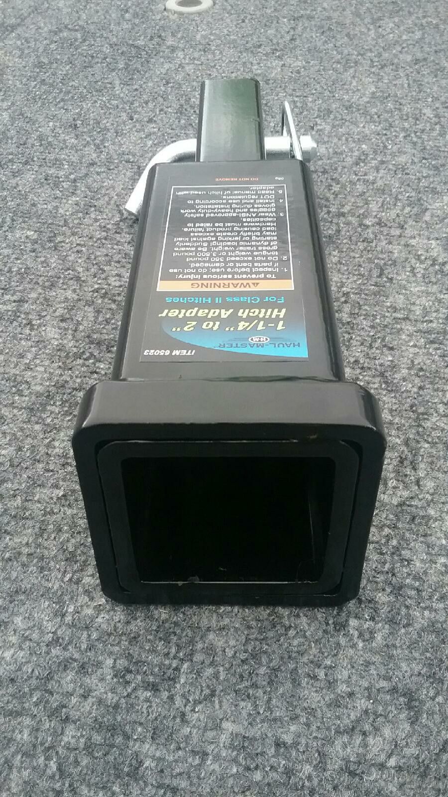 Adapt your 1-1/4 in. receiver to accept cargo carriers or hitch mounts built for 2 in. receivers. The tongue capacity is rated at 350 lbs. for Class II hitches. The hitch adapter is powder coated over an electroplated layer for superior rust and corrosion resistance. Great for cargo carriers and other accessories for 2 in. receivers Tongue capacity rating is 350 lbs. for Class II hitches Special powder-coat finish over electroplating layer provides superior resistance to rust and corrosion