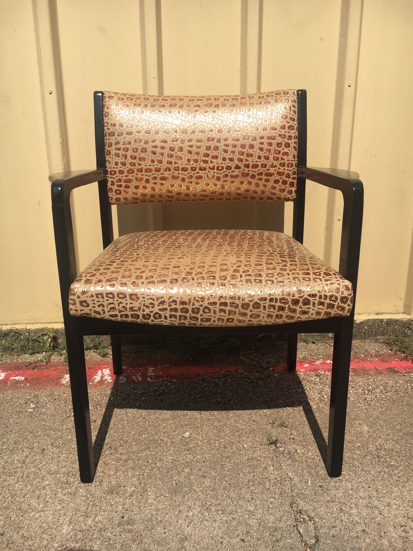 Mcm vintage chair lacquer black with new leather upholstery and be padding