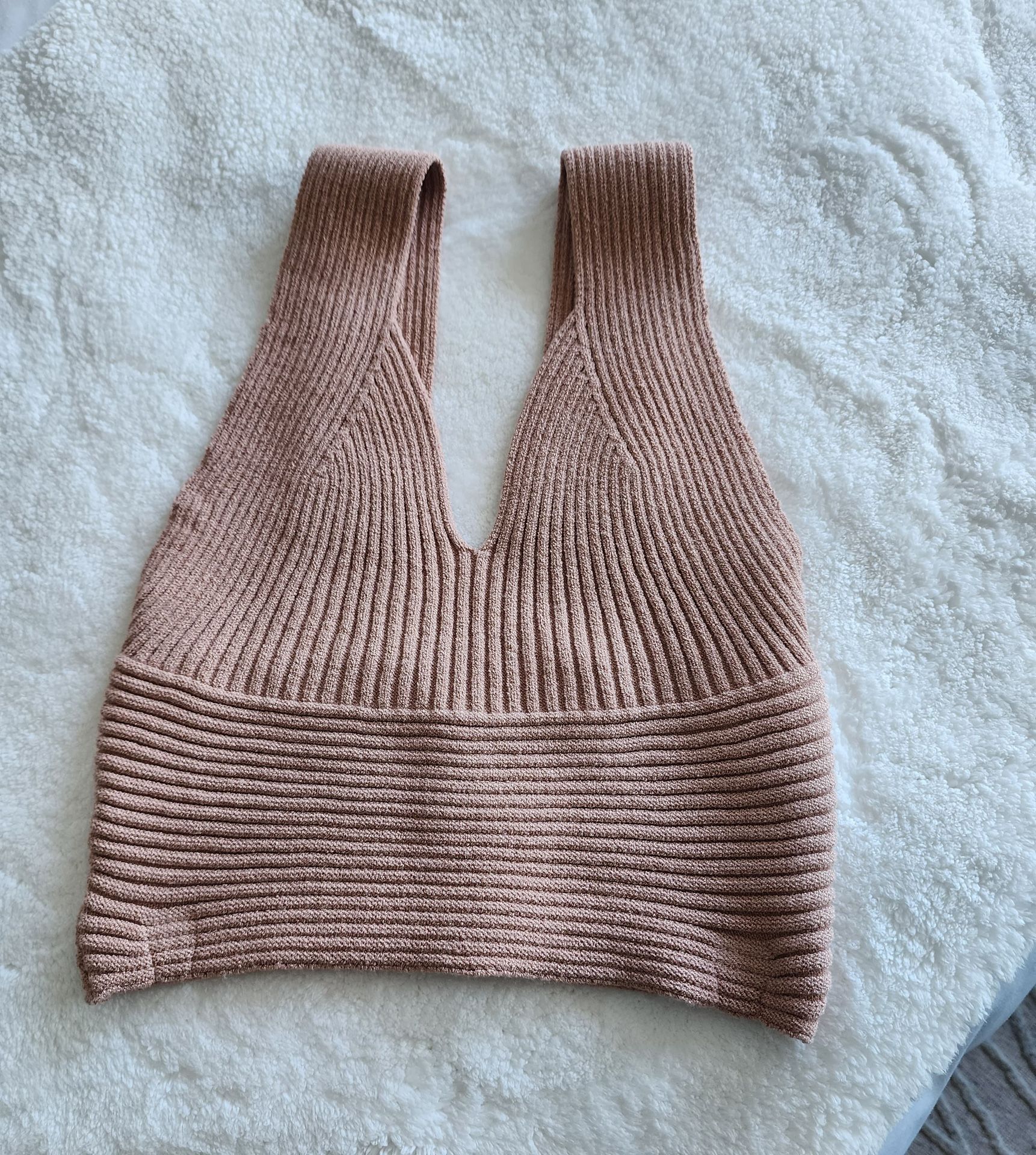 Ribbed knit top — never worn. Brazilian design with refined texture and impeccable finish. $15