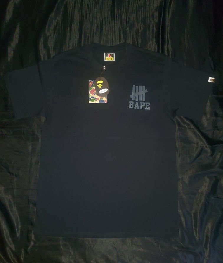 OFFER ME! BRAND NEW WITH TAGS! I HAVE MULTIPLE IN EACH SIZE SMALL & LARGE! The BAPE x Undefeated Ape Head Tee in black is a stylish and versatile t-shirt for men. Made from cotton and featuring a crew neck and short sleeves, this shirt is perfect for the summer season. With a regular fit and sizes ranging from S & L, it offers a comfortable and trendy look. The collaboration with A Bathing Ape and its unique Ape Head design adds a touch of streetwear flair t o this wardrobe essential.