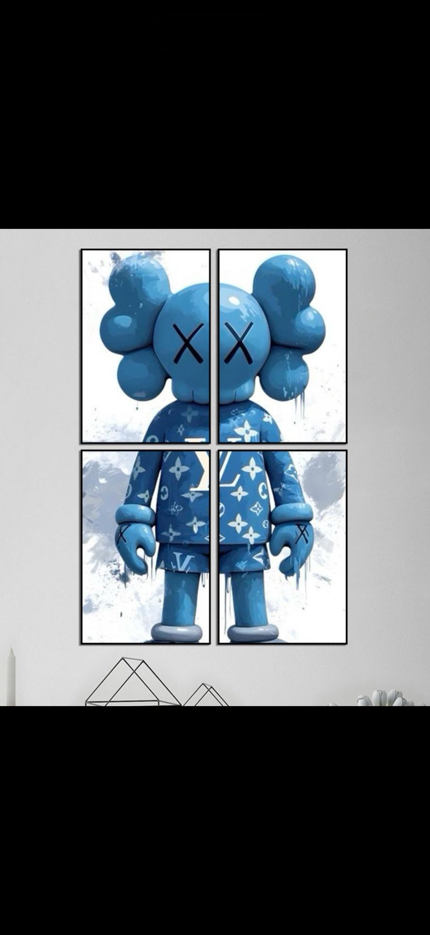 4 Piece Modern Kaws Art Picture Poster Print With Borderless Glass Frames