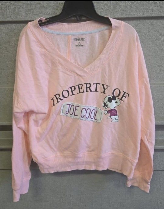 Peanuts Snoopy Women's Cropped V-neck Joe Cool Sweatshirt Size Medium