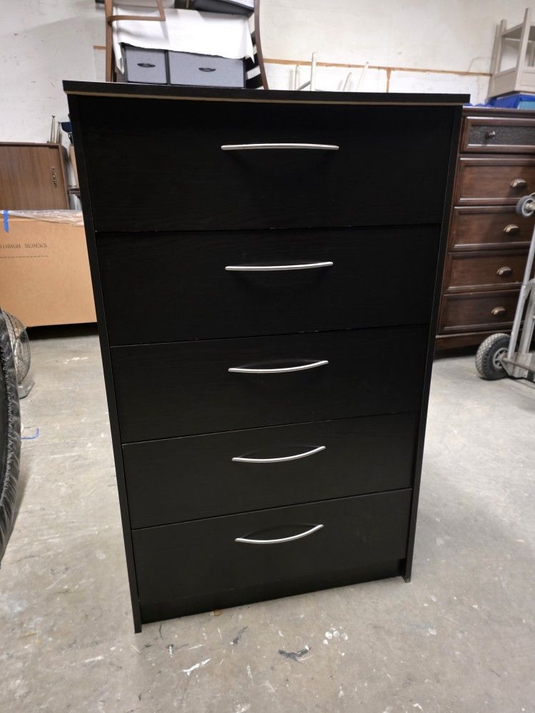 Selling a nice modern espresso color small tallboy dresser or chest of drawers in very good condition all around. Measures 45 inches tall, 28 wide and 16 deep.