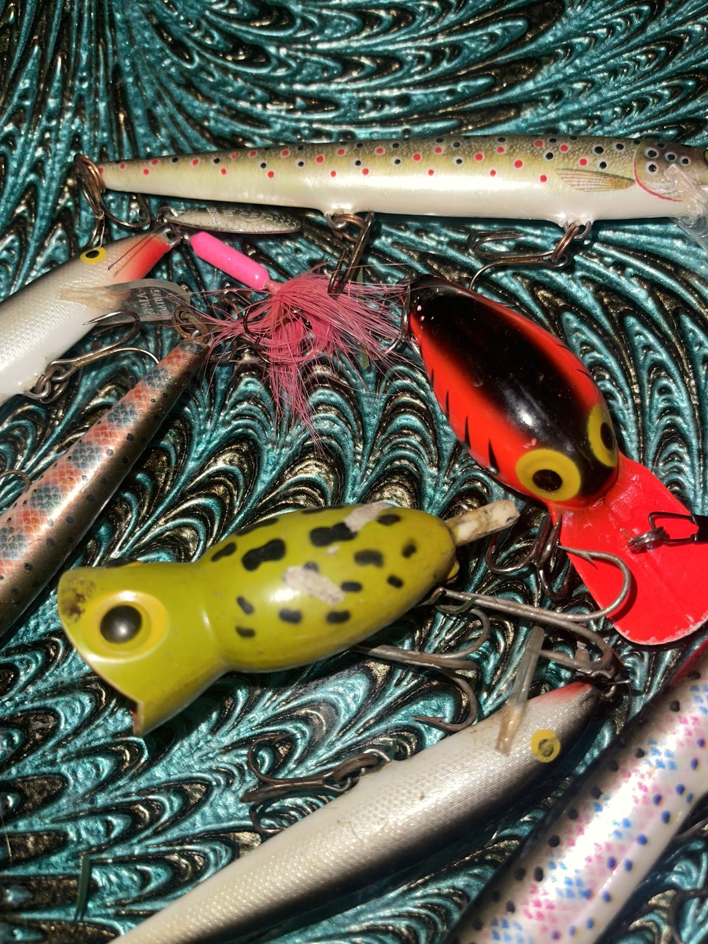 I have about 30 well preserved fishing lures from the 50’s/60’s. They sell for $20-$60 each on eBay. Willing to sell at a steep discount for multiple. $10 each/ minimum purchase 4. I also have some fishing rods. Don’t ask questions as I know nothing about fishing. Just come take a look. The photo shows only a handful of them.