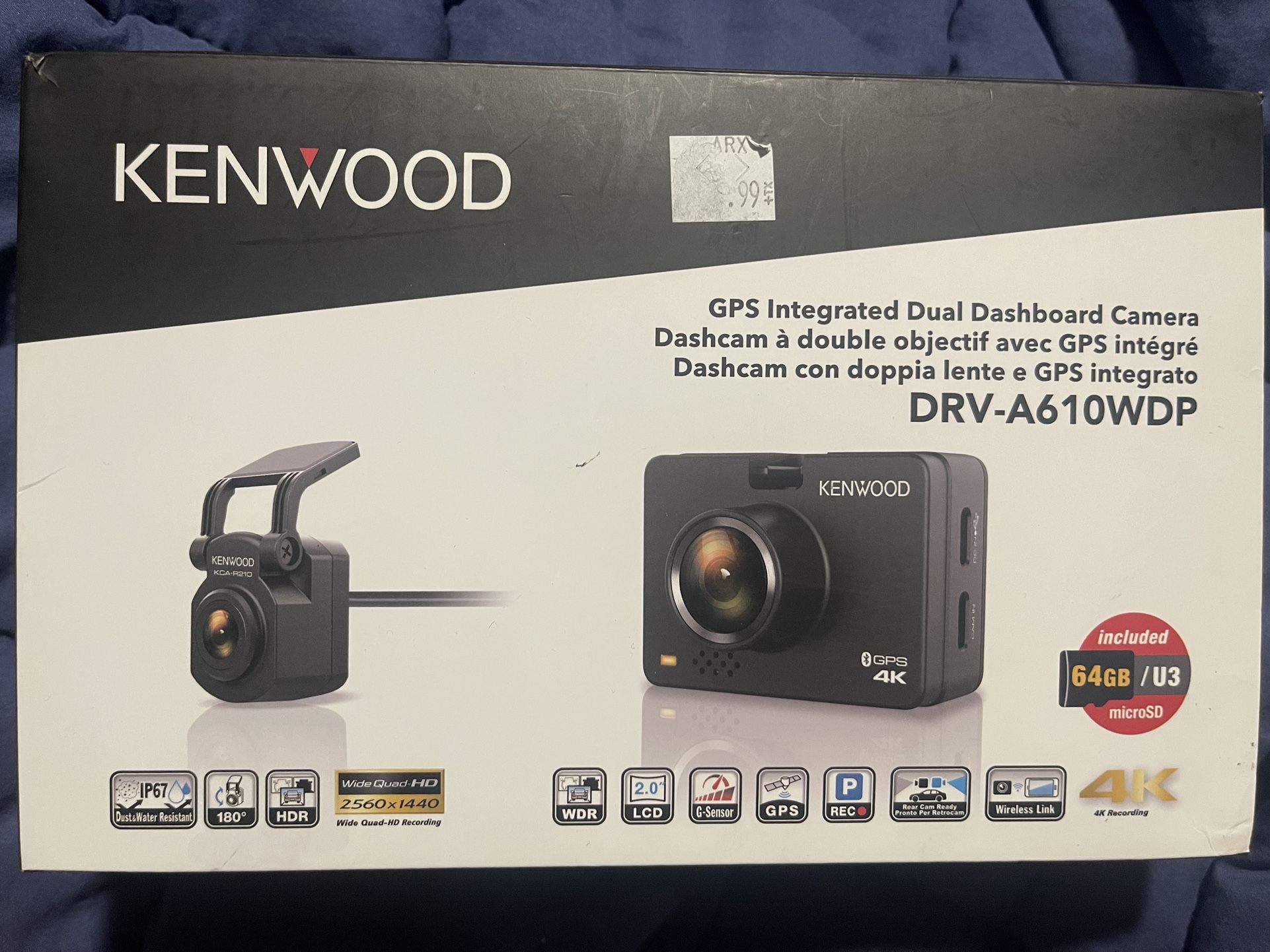 4K Front Camera, a 3.7 MP 2K Wide Quad Hi-Vision Rear Camera, and a 2" LCD. Watch and download video via Kenwood Wireless link app