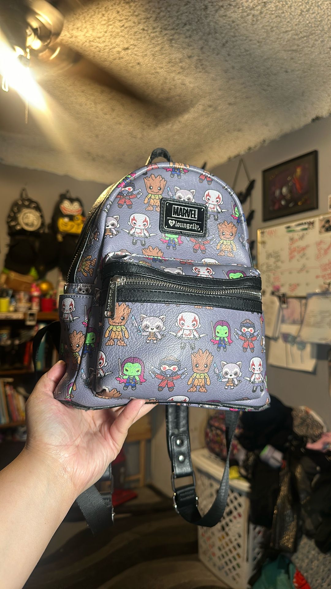 Marvel Guardians of the galaxy loungefly Old but clean Has some wear from having it hung for a few years as shown in last picture but other than that clean Trying to clear out space