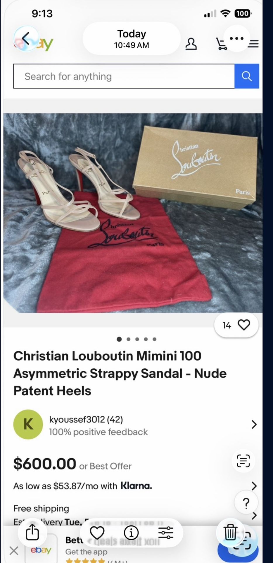 Red Bottoms Mimini 100 Asymmetric Strappy Sandal - Nude Patent Heels 37