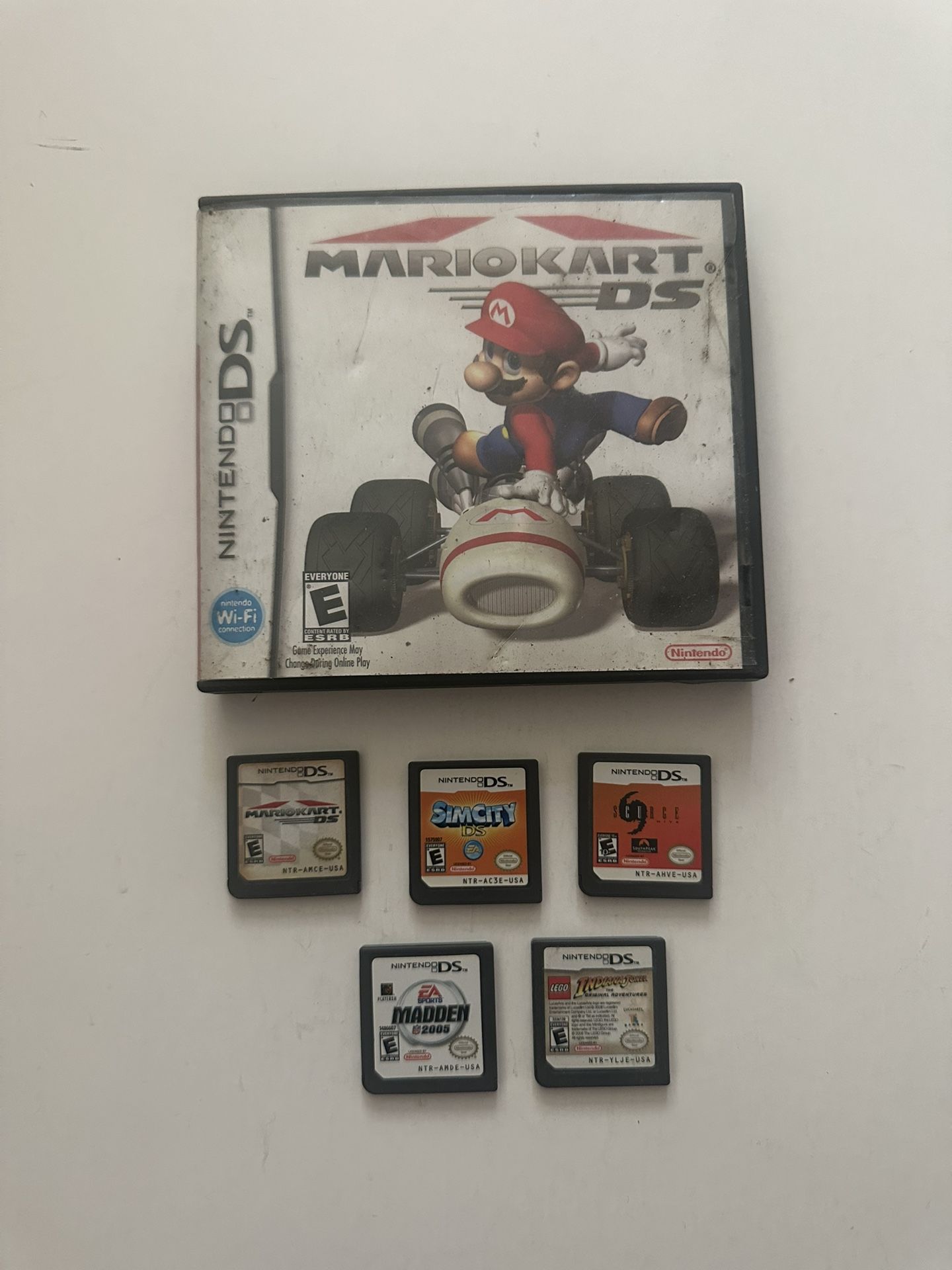 All authentic, tested, and working Lego Indiana Jones $10 Mario Kart DS with case, all courses, characters, and karts unlocked (SOLD) Scurge Hive (SOLD) Sim City DS $10 Madden NFL 2005 $5 Or $20 for all