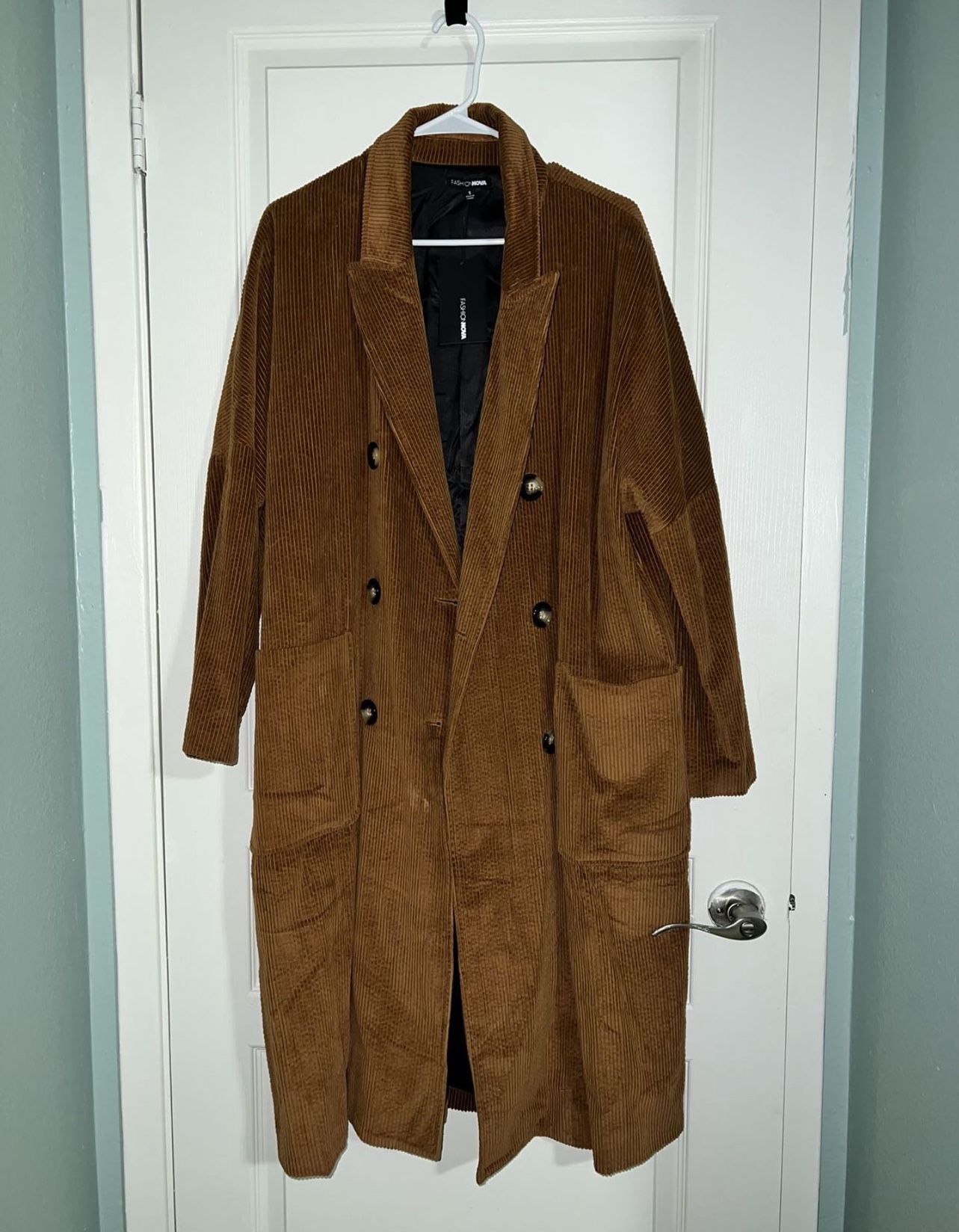 Brand new with tag. Oversized, super cozy and stylish! The coat is soze small but fits medium, large and possibly X-Large as well. I’m size small and this was quite big for me.