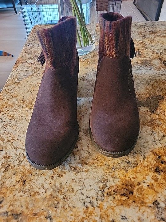 Born Women's Charon Boot Size 9 Block Heel Brown Suede Blanket Knit Cuff Boho. New without tags or box Smoke-free home