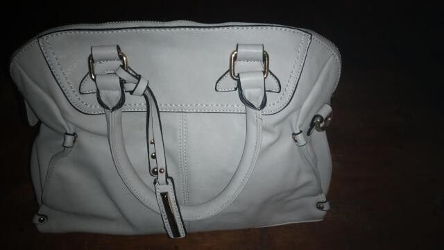 Large gently used pocketbook/handbag; beige; 1 outer zipper; 4 pockets & 2 zippers inside