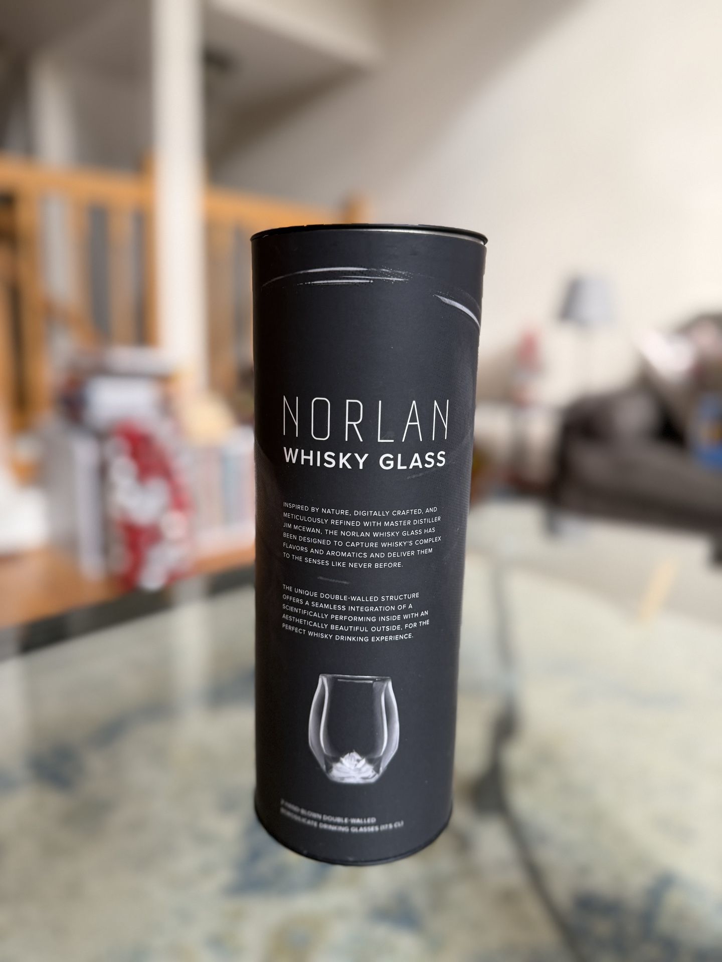 Box of 2 hand-blown, double walled, brand new, never used Norlan Whiskey Glasses. Glencairn-inspired nosing meets modern tumbler form in this insulated, featherweight glasses, refined by a master distiller to elevate every sip. Microfiber polishing cloth included. The Norlan Whisky Glass is meticulously crafted to enhance the experience of your favorite whisky—or whiskey—be it Scotch, Bourbon, Rye, Canadian, or Japanese. This innovative double-walled glass was designed to amplify whisky's complex flavors and rich aromatics, delivering an unparalleled tasting experience. Since its debut, it has become a global favorite, with nearly half a million sold and consistently ranking as one of the best whisky glasses in online reviews and customer surveys. Handcrafted from lightweight borosilicate glass, the Norlan Whisky Glass combines a scientifically engineered interior with an elegant, aesthetically pleasing exterior. The result is a superior nosing glass that not only elevates your whisky tasting but also serves as the ideal gift for whisky lovers and those just starting on their whisky journey. Designed in 2015 by Norlan co-founder Sruli Recht, the Norlan Whisky Glass was perfected with insights from over 90 experts — including Jim McEwan, one of Scotland’s most celebrated master distillers, on the famed Isle of Islay in Scotland. Its revolutionary double-walled design broke Kickstarter records and helped redefine how whisky is experienced worldwide