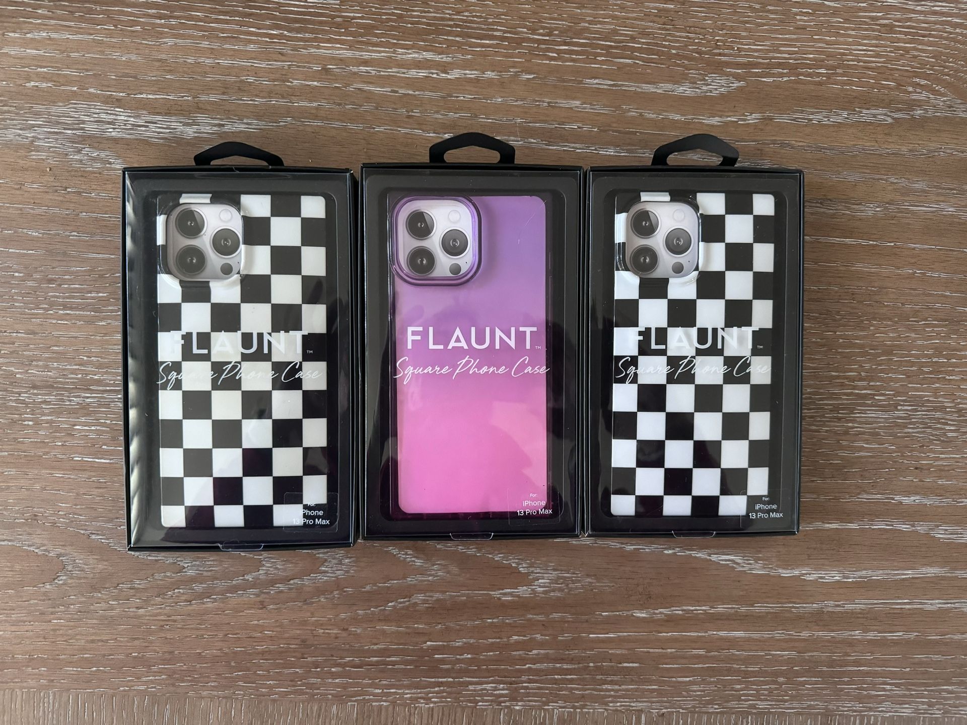 I have 3 flaunt cases all brand new for an iPhone 13 Pro Max. The price is per case not for all 3. $15. OBO