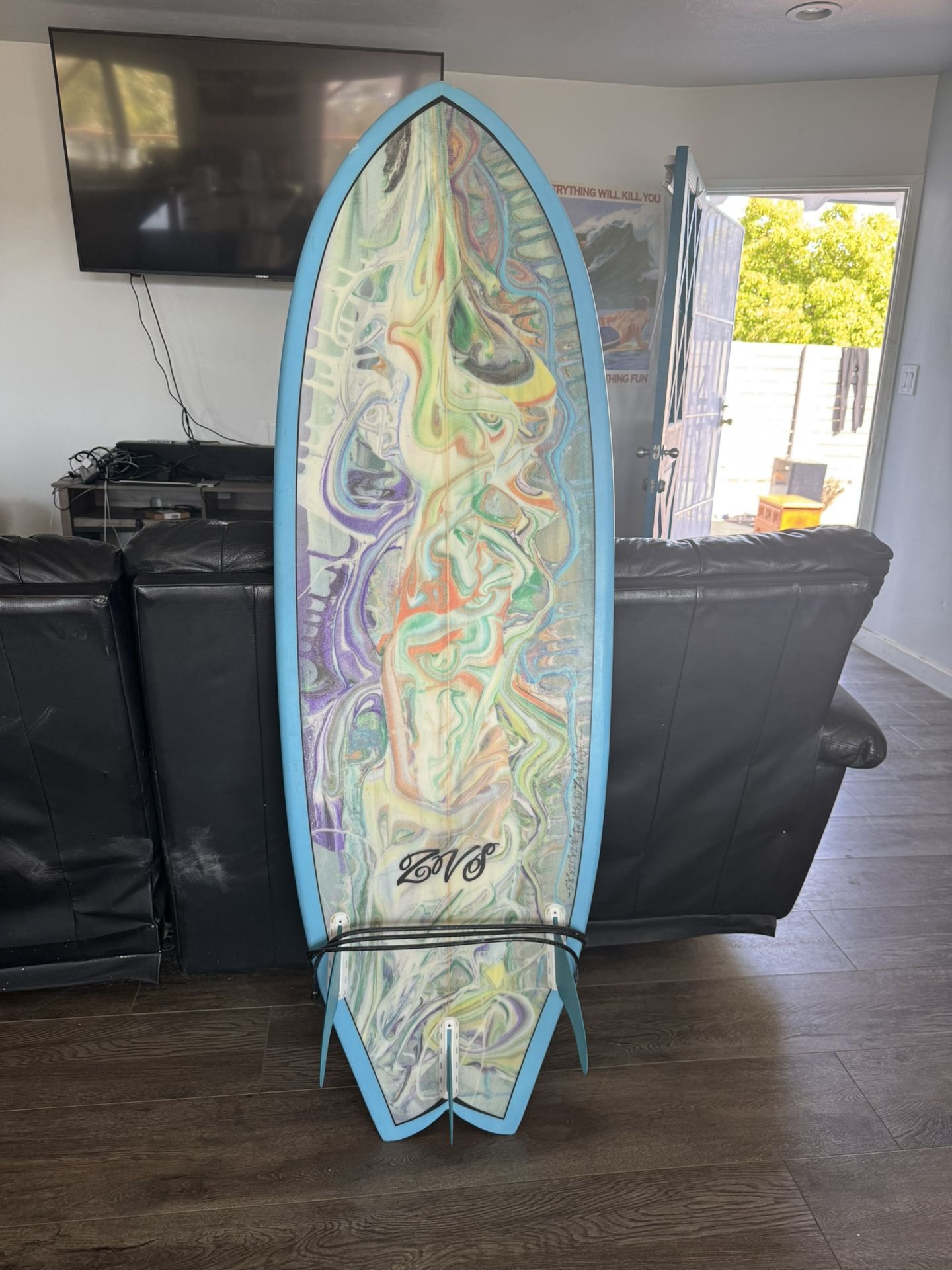 This board is one of a kind truly. It has a beautiful design on the front and back and can be used for surfing or for artwork.