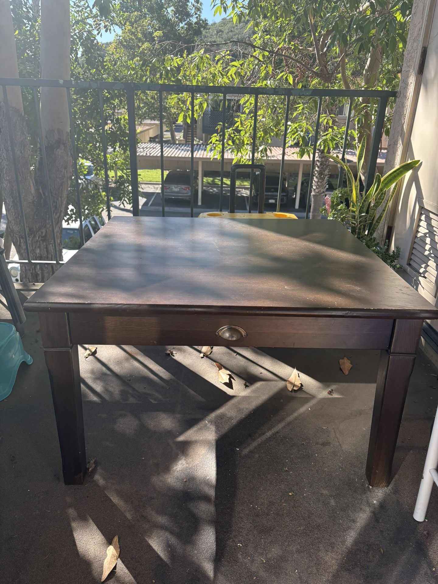 Good condition- minor scratches- see photo. Has a drawer! 35 1/4” x 35 1/4” 20 1/2” height