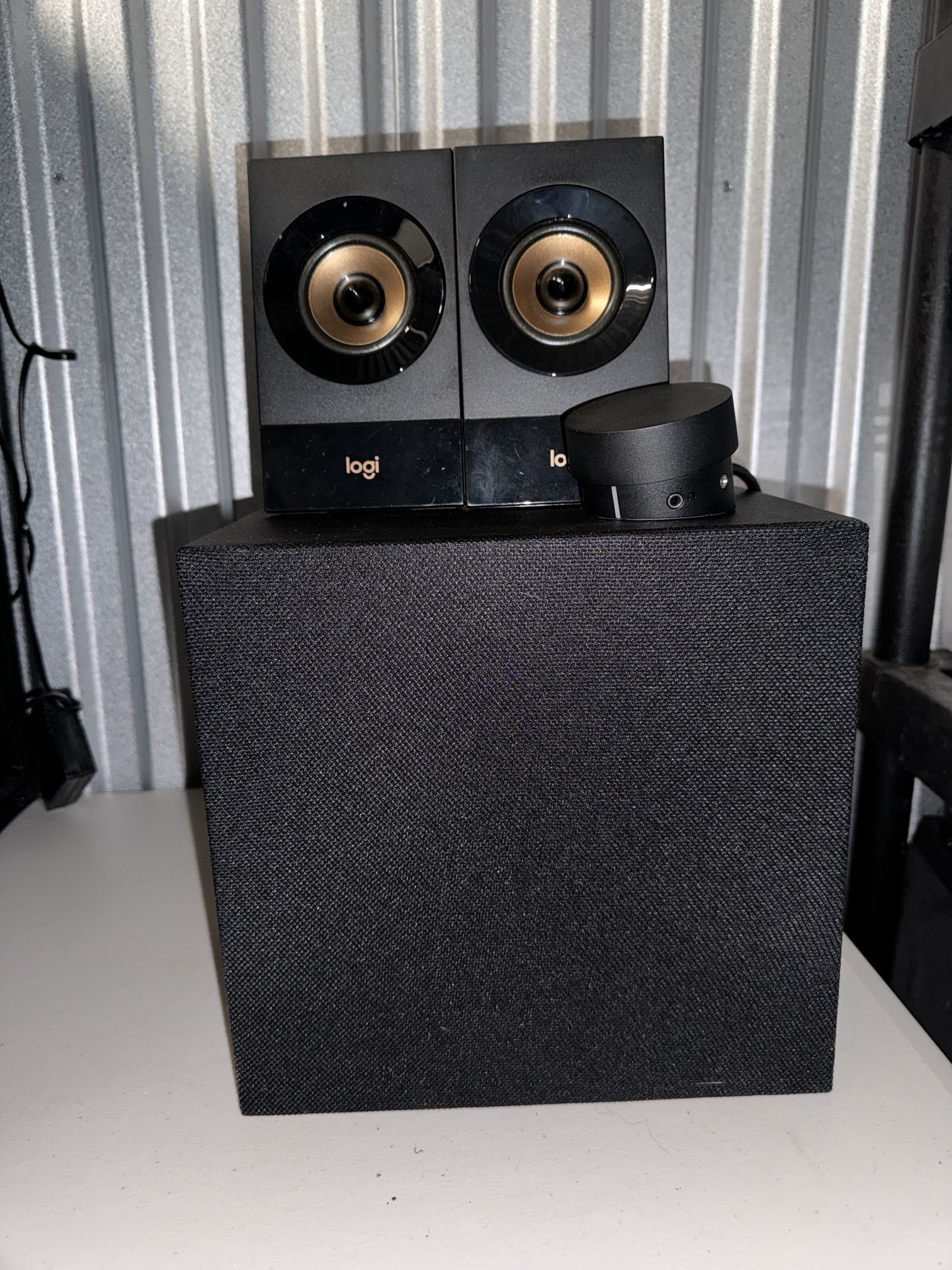 Used good condition ——————————————— Big sound at your fingertips with a 2.1 speaker system, integrated control pod, and multiple hookups for up to three devices. Serious wattage at 120 Watts Peak/ 60 Watts RMS power delivers powerful sound and full bass to fill your space. Works with any device with either headphone jack 0.14 in (3.5mm) or RCA inputs Computer Smartphones Tablets Televisions MP3 players DVD / Blue-ray players Game consoles