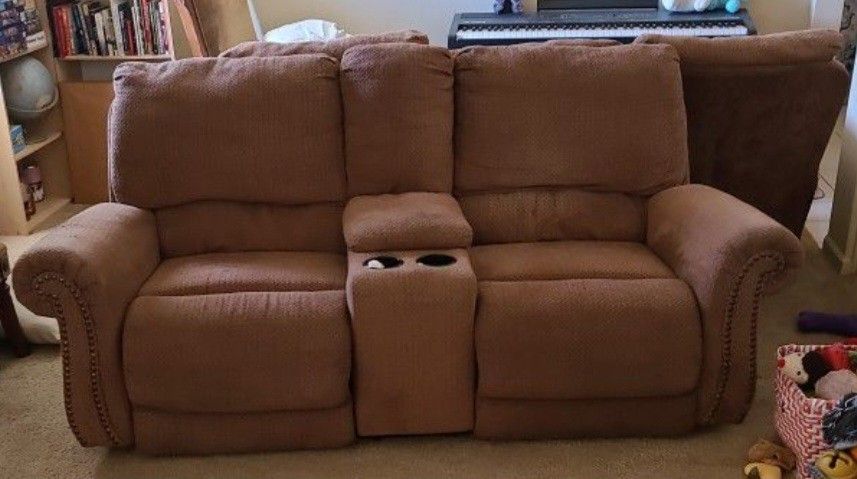 4 total recliners, has storage and cup holders. The middle seat needs new spring. Needs to be cleaned, in a house with dogs. Requires a truck to move. OBO