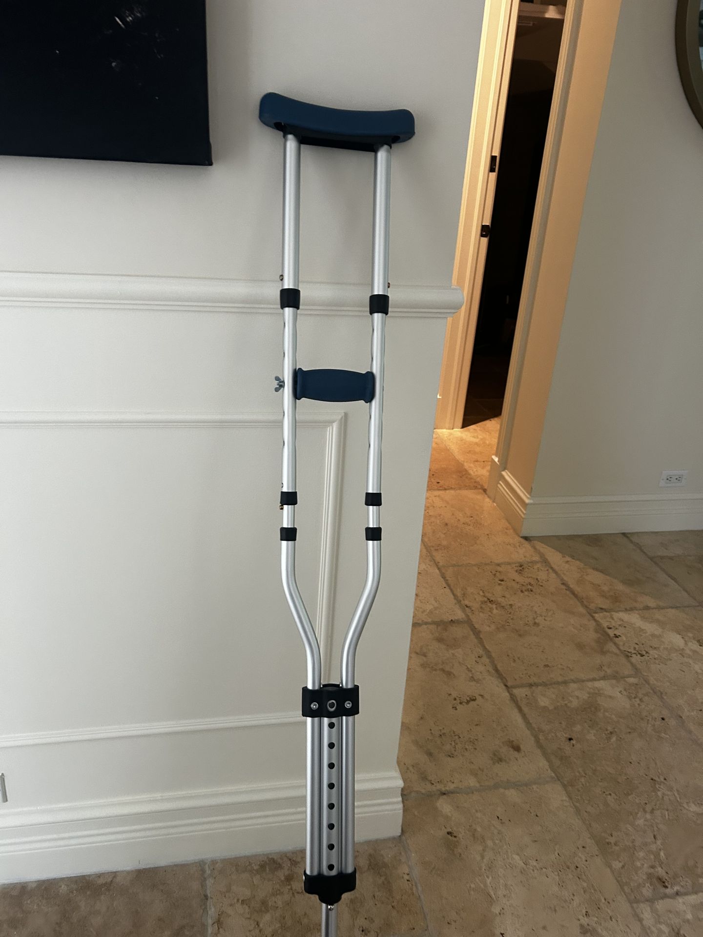 Brand new crutches still in the box still in the plastic never used. Good up to 300 pounds they say on the box. $10. We also have a set of foldable crutches, brand new still in the box. $20.