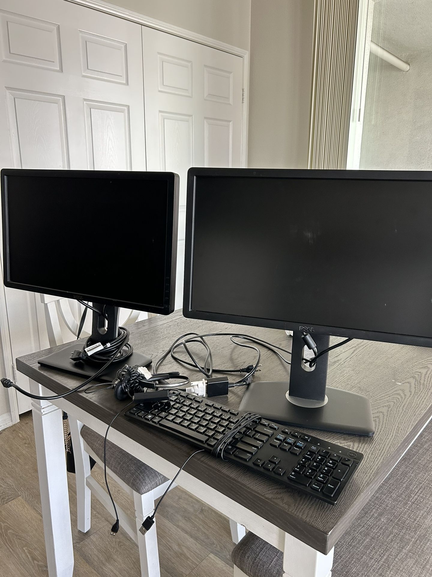 Hi I’m selling my dell computer monitors there well taken care of I used them to work from home but now I don’t have use for them ,comes with keyboard and headset and all the wires for the monitors