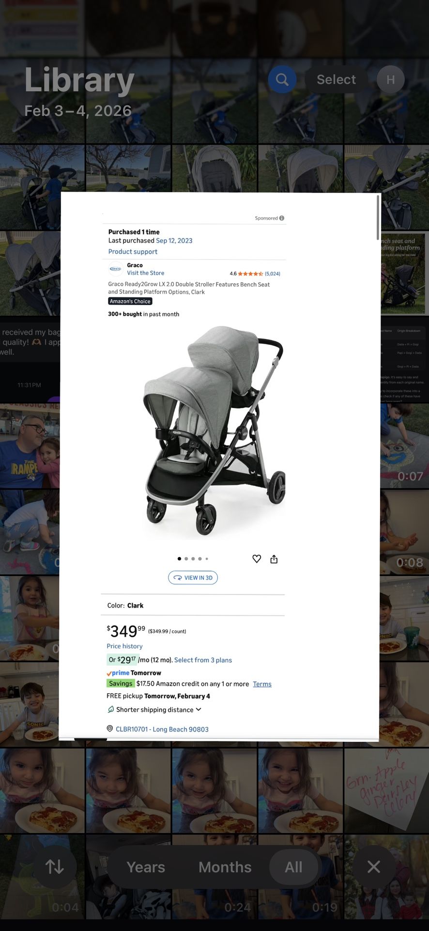 Double stroller, used a few times. Please see pics of current condition. Will clean thoroughly before pick up.