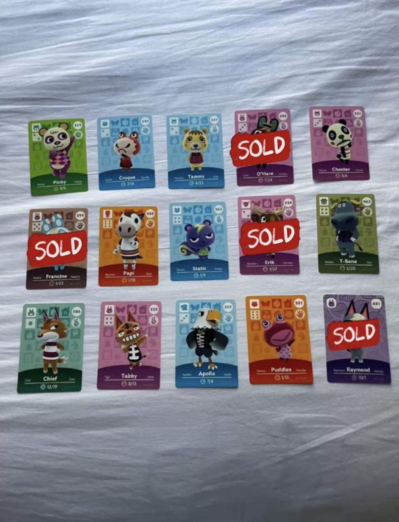 Animal crossing amiibo cards, these were all duplicates so I don’t have use for them. I unfortunately don’t have sleeves for them but they are in great condition. $5 each