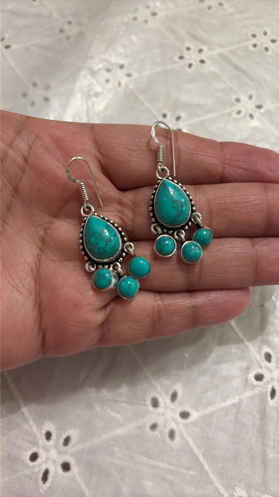 925 Sterling Silver Medal , Turquoise gem dangle earrings, brand new comes along with jewelry gift box
