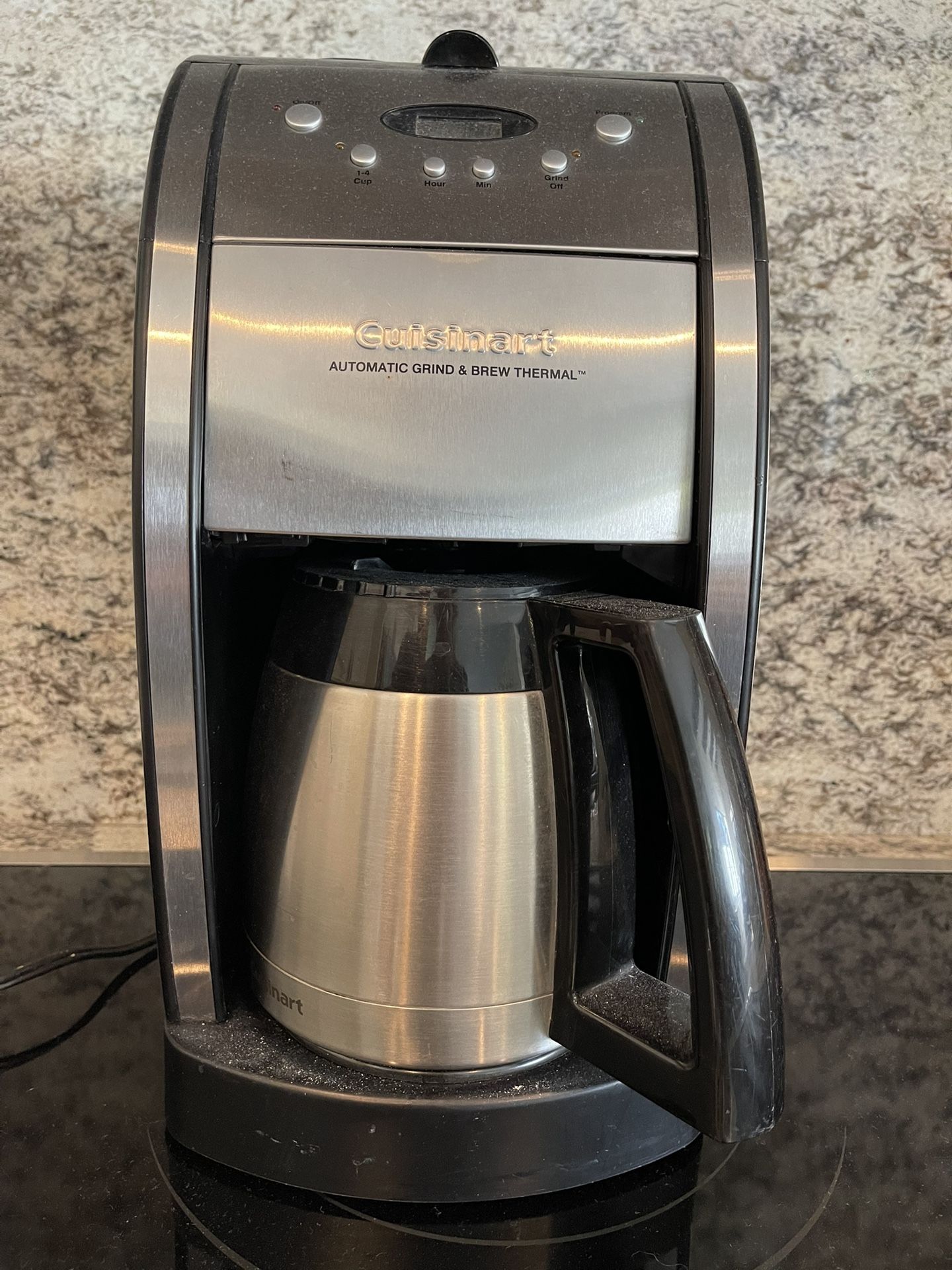 Used Cuisinart automatic grind and brew thermal Stainless steel Nothing wrong with it If the ad is up, the coffeemaker is available