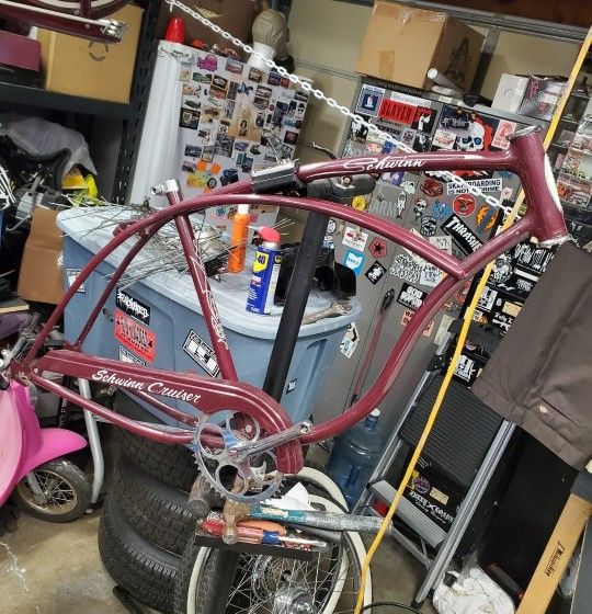 I bought this bike from a collector who restored it to the T! No expense was spared. Chromed everything. So I got it for that reason and took all the parts. All that's left is the frame and chaingaurd its really nice. You get all that's in the picture. It's been hanging in my garage for years. Need the room. I'll take $150 FIRM. Located in SAN PEDRO