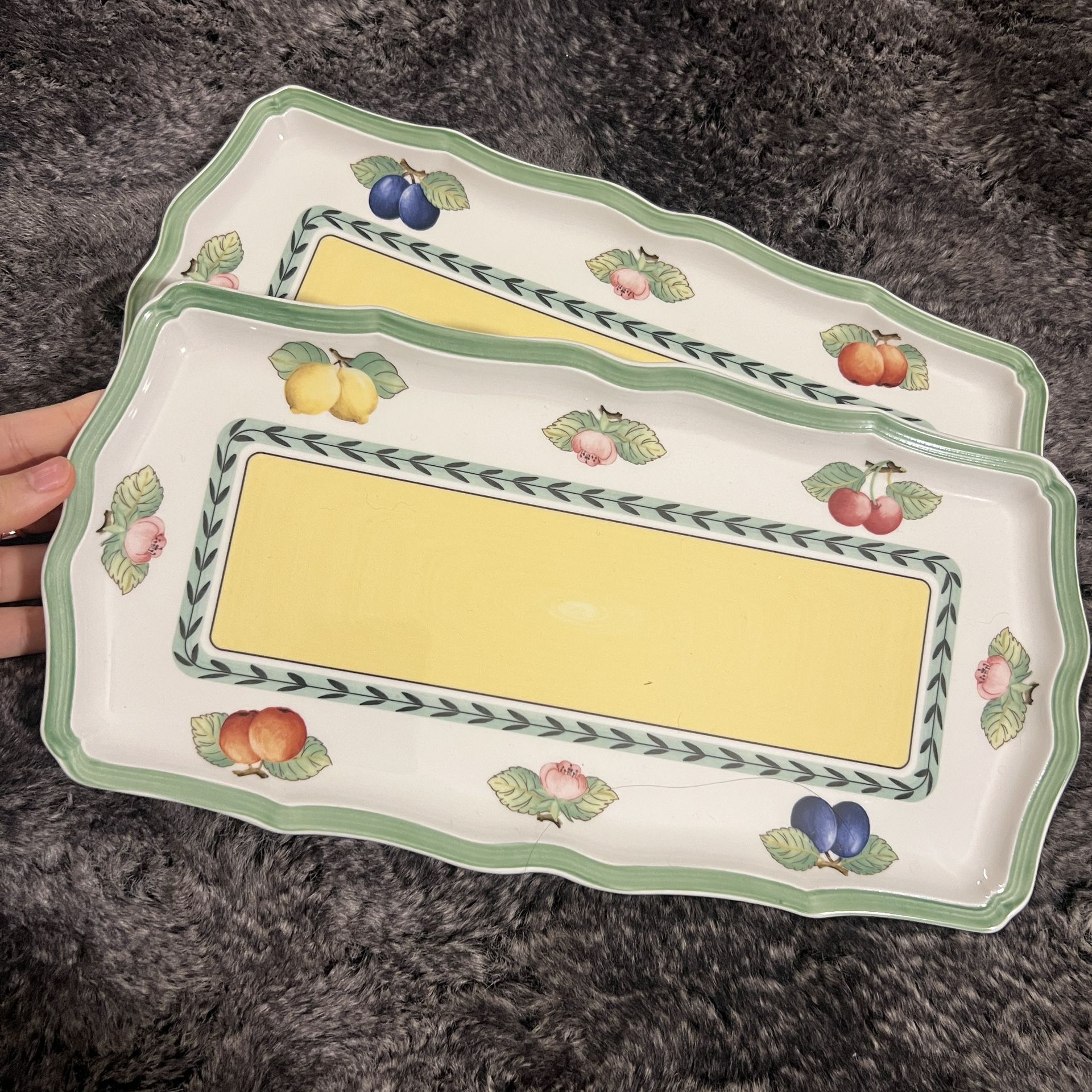 This is a set of 2 Villeroy & Boch "French Garden Fleurence" porcelain trays. The trays are rectangular in shape, measuring 13 1/2 inches. They feature a multicolor French Garden Fleurence pattern and have a glossy finish. Produced in Germany in the 1990s, these original art pottery trays are designed for serving sandwiches or other foods. Discontinued pieces, just for collecting never used. I also have whole collection of French garden set, if you’re interested please contact me!