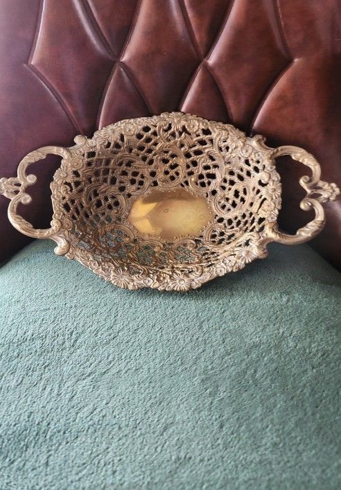Heavy!! Solid cast brass precious crafted brass bowl with handles An Italian Openwork/filigree/pierced basket or bowl for fruit bread or decorative purposes. Its made from solid cast brass!!