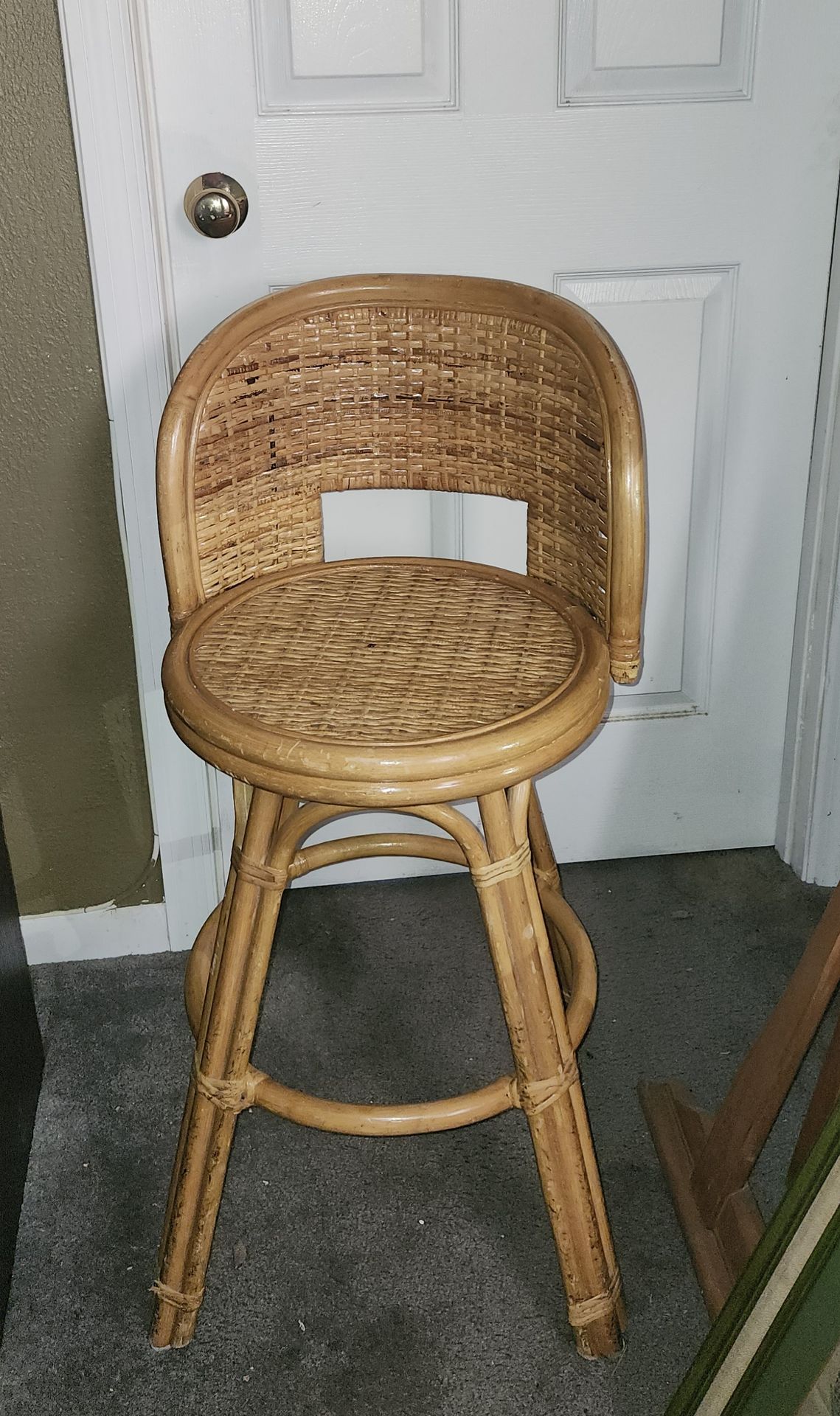 Vintage Mid Century Rattan And Wicker Swivel Bar Stool