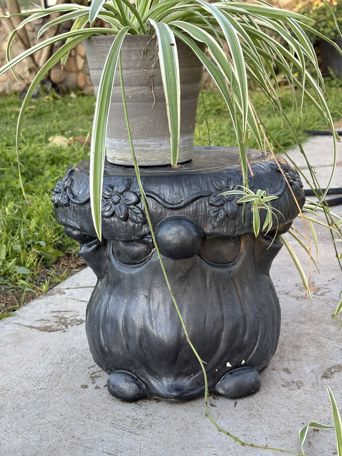 This is a mushroom garden gnome plant stand or can be a stool to sit. 11 1/2” H x 13” W Made of a fiberglass resin, perfect for indoor or outdoor as yard decor or on the patio. $15 Has wear see pictures Cash only Pick up only Riverside 92503 Van Buren/ Arlington area Garden decor, yard decor, mushroom garden gnome, mushroom decor, fairy garden, whimsical garden, plant stand, indoor plant, outdoor garden stool, mushroom gnome