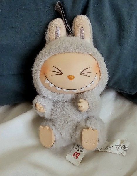 Grey Sitting Hehe Labubu