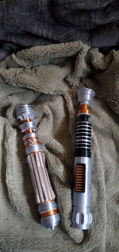 3d printed light sabers .the photo examples are of Leias saber and Luke Skywalker's with an inserted green laser. Looks super awesome at night but makes a fun toy or display piece too. These 2 were given to my nephews for christmas and they loved them, so I figured I would offer my services up to anyone else interested . Let me know what you want and we can discuss the details! Just added Darth Vader saber to the mix and it's awesome! Thank you