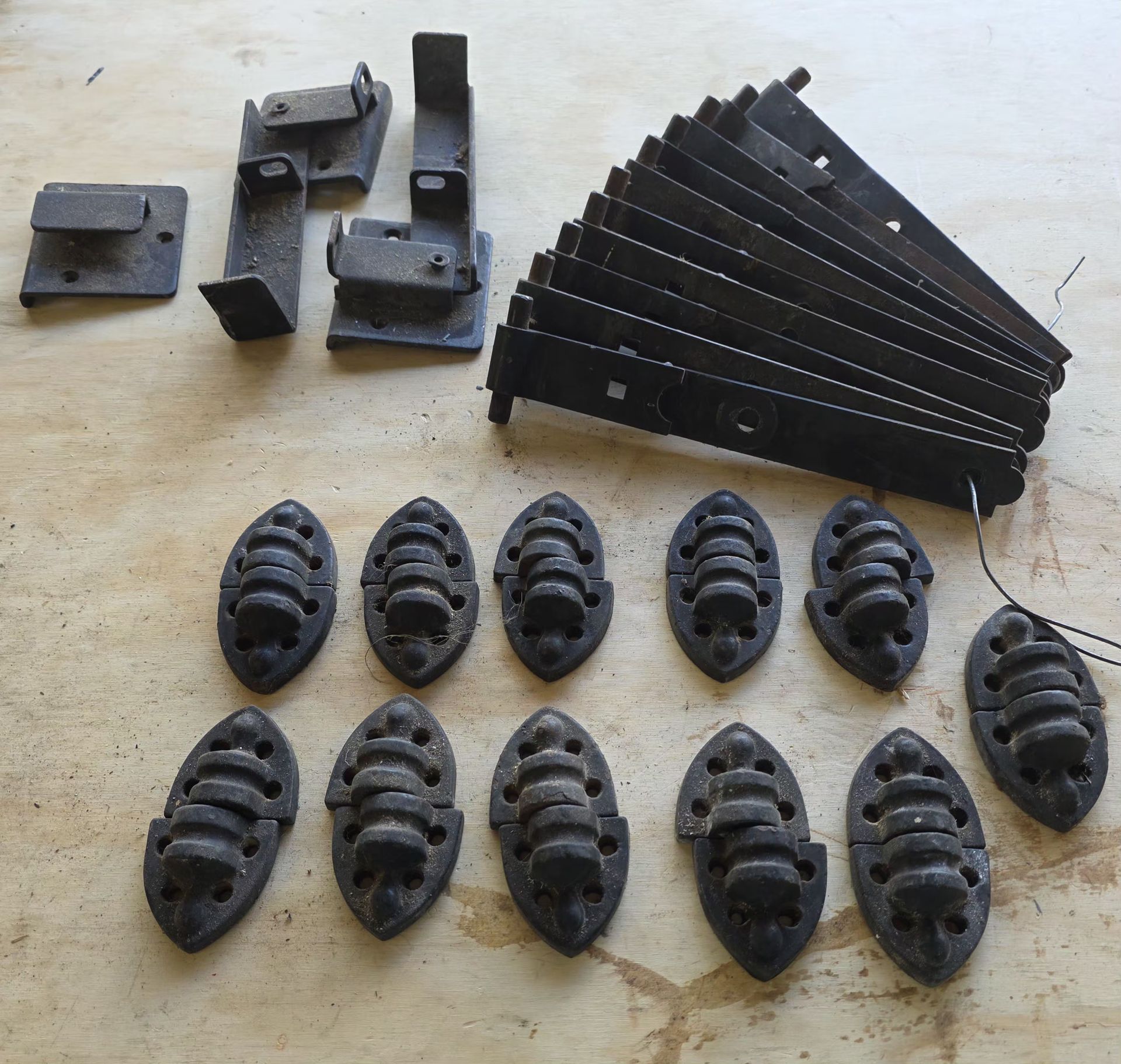 10 hinges with cast iron cups and 2 locks good for up to 150lb gates.