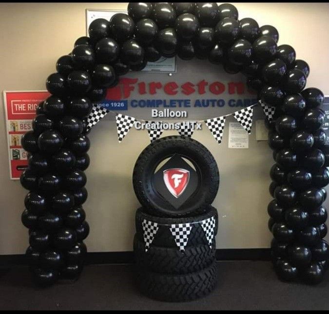 Racing cars party decorations, globos . Balloon columns balloon arch