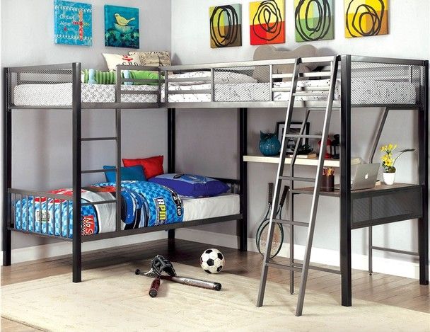📍Message me when you are ready to buy. :: Brand New In The Box 📦 Assembly Is Required ( we don't assemble) :: 🚛 Delivery fee , 💭 *Price shown does not Include sales tax. :: ✏️ Contemporary Silver Metal, Others Full Metal Construction 3 Beds Corner Design Wired Top Panels Workstation w, Shelves Mattress not Included Assembly Required L-shaped Triple Twin Bunk Bed 118 1/4"L X 78 1/4"W X 67 3/4"H