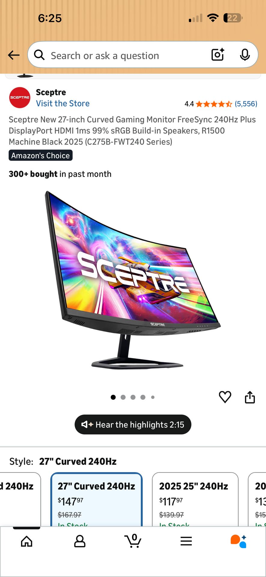 Spectre curved 27" 240 HZ