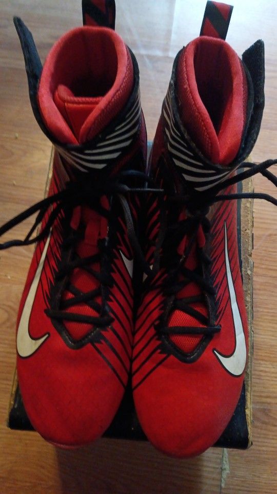 NIKE (STRIKE) RED, BLACK & WHITE LACE UP FOOTBALL CLEETS = MEN'S SIZE # 11 - 1/2 : U.S.