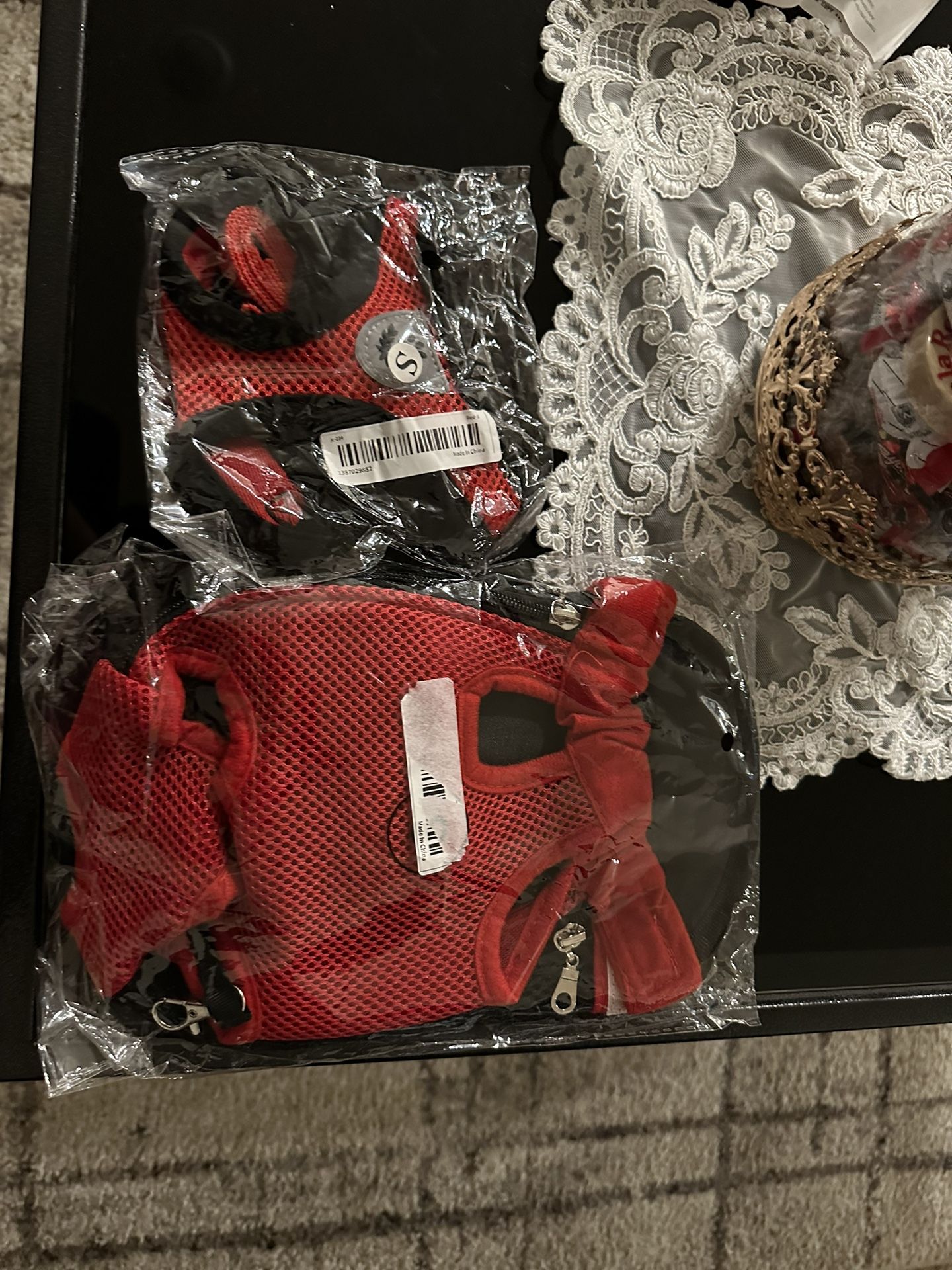 Hello I’m selling this 3 items for small puppies .. brand new never open .. portable dog backpack .. pet hardness and leash set .. also a mini backpack with leash .. $30 for the 3 items