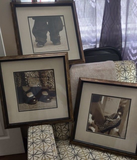 All three pieces sold together, beautifully matted and framed and documented on the back. I did attach the artist biography. These three pieces are titled little feet and boys and girls. They're in beautiful condition. OBO